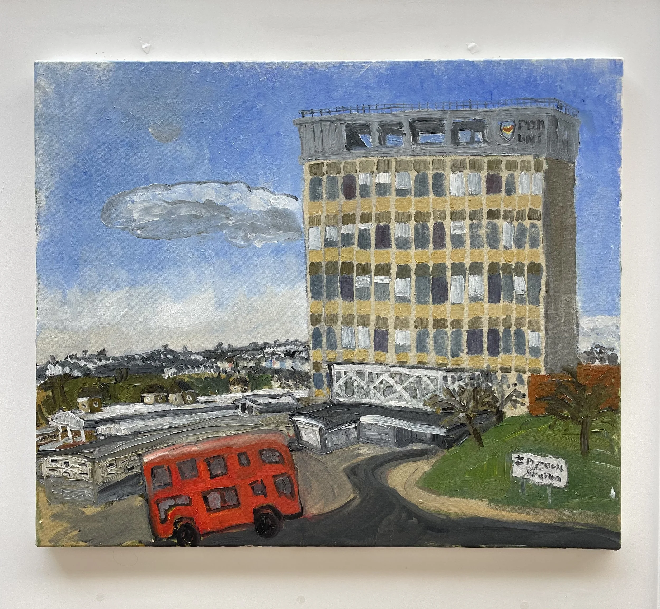 “This exhibition consists of a collection of recent paintings, all of which are either Plymouth landscapes or portraits of people who live here; The portraits are of friends, or my partner, who come and sit for me in the studio; The landscapes were done in response to drawings made from life out and about in Plymouth. Drawing is the mainspring of my practice, and I have been drawing from life all over this city for the past ten years or more. The content, subjects, narrative and handling for my paintings emerges very slowly out of this process.